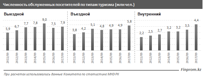 В течение предыдущих пяти лет показатель въездного туризма незначительно превышал уровень в 5 млн человек.