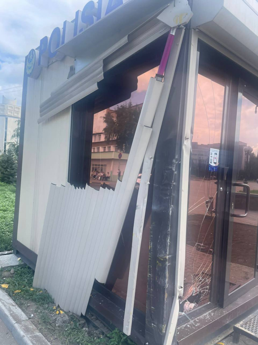 Автобус врезался в модульный пост полиции в Семее, передаёт BaigeNews.kz.