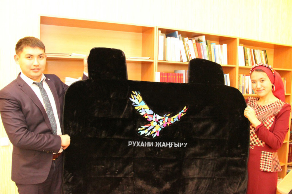 Комплекты авточехлов с надписью «Рухани жаңғыру» собственного производства презентовала жительница Буландынского района Акмолинской области в ходе II Форума женщин-предпринимателей региона, передает корреспондент BNews.kz.
