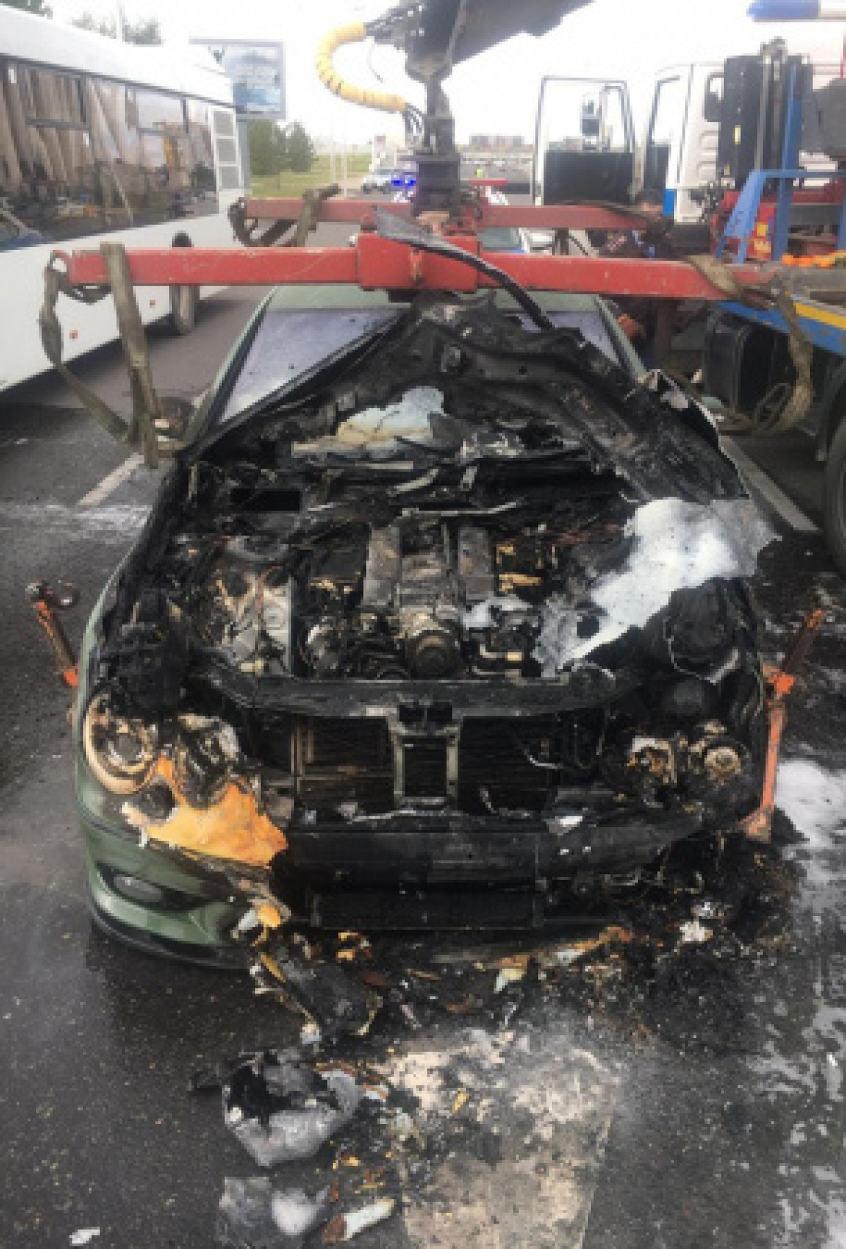 По прибытии пожарных подразделений горел двигательный отсек и частично салон автомашины. Принятыми мерами пожар ликвидировано в 12.46. Жертв и пострадавших нет. Причина пожара устанавливается.