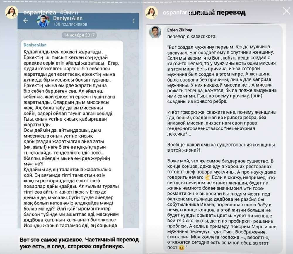 Заместитель руководителя Молодежного ресурсного центра Шымкента Данияр Алан уволился после публикации в своем Telegram-канале сексистского поста о "создании женщины для каприза мужчины", сообщает BaigeNews.