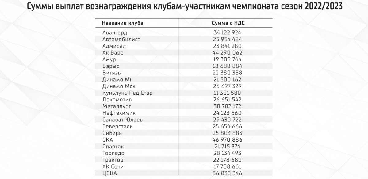 "Порядок распределения между клубами доходов от ТВ и коммерческих прав остался неизменным. 30 процентов общей суммы распределены между 22 участниками чемпионата сезона 2022/2023, 40 процентов - по принципу телеспроса. Высокие доходы получили те клубы, чьи ТВ-права продаются дороже", - сообщили в КХЛ.