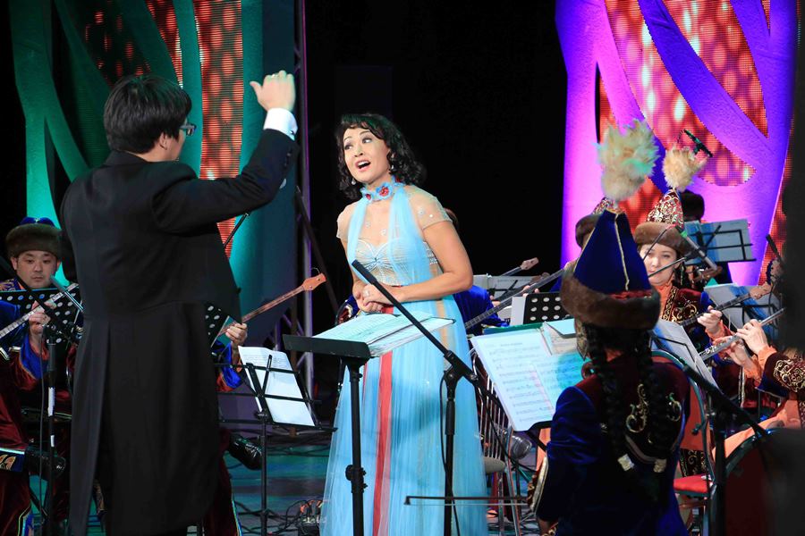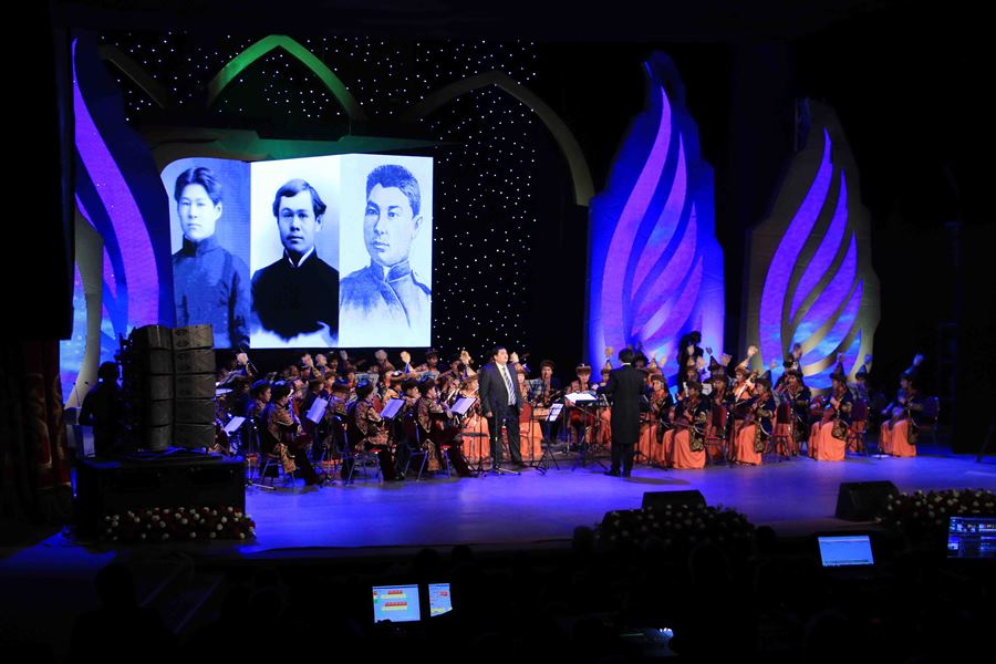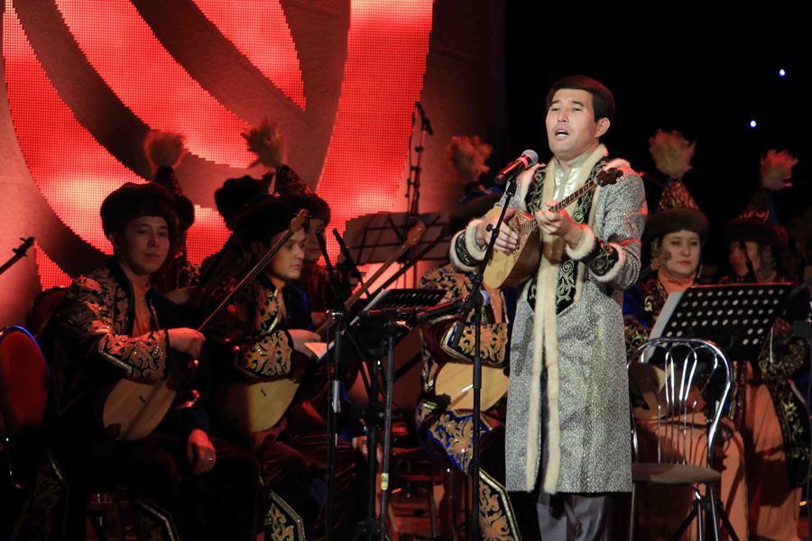 В этот вечер для гостей на сцене театра имени Мухтар Ауэзова выступили именитые айтыскеры, оперные исполнители и музыкальные оркестры.