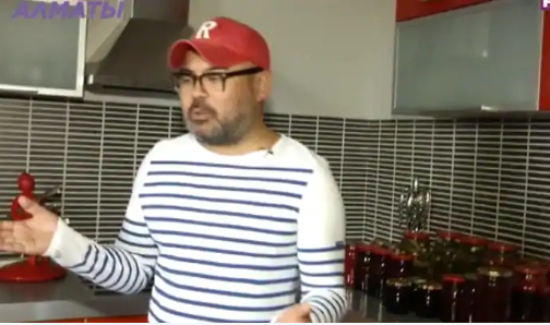 Сакен Жаксыбаев смело показывает свои модные покои: любимая книга Ральфа Лорена, весом в 14 кг, сервант и стол с неприлично дорогой посудой. А это кухня, где он солит огурцы.