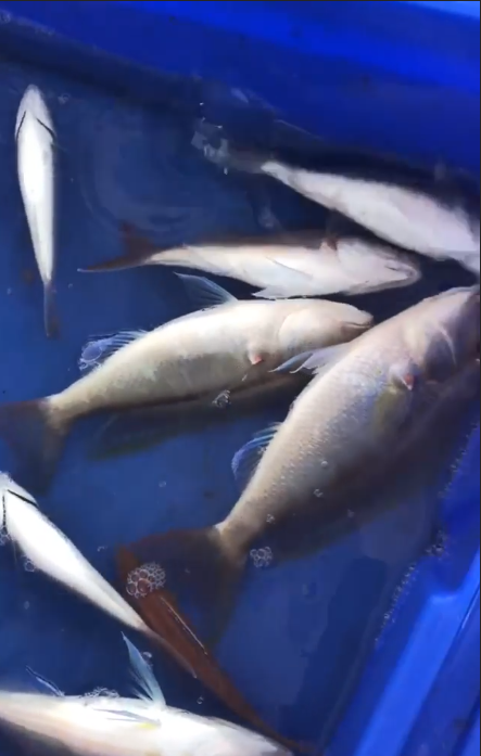 Виновница торжества решила в свой день рождения порыбачить. Она вместе с супругом и дочерью забросили удочки в океан и наловили несколько рыб.