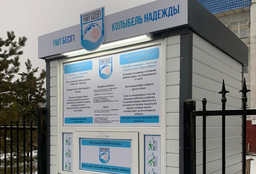 Три года вынашивалась идея установки первого беби-бокса в Казахстане. Проект назвали "Үміт бесігі" ("Колыбель надежды"). Во имя спасения подкидышей объединили свои старания три казахстанские общественные организации. Средства на боксы нашлись почти стразу, спонсоры и помощь от рядовых казахстанцев в течении нескольких месяцев решили все технические вопросы. Общественников поддержали казахстанские врачи.