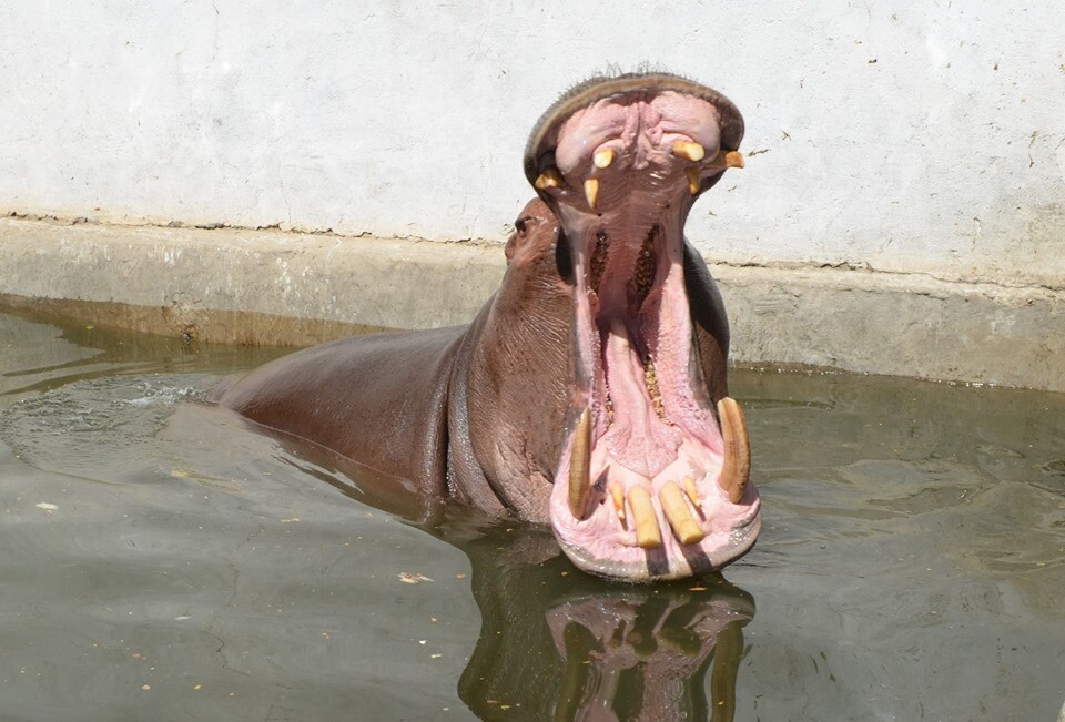 Из-за развившегося патологического прикуса зубов у любимца шымкентского зоопарка - бегемота Турсуна - возникла серьезная проблема с приемом пищи и с травмированием слизистой щек и десен, пишет