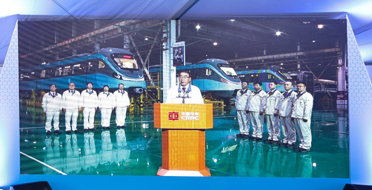 Во время прямого включения с китайским заводом CRRC Tangshan премьер-министру представили первые вагоны, которые сейчас собираются с использованием технологий, применяемых в высокоскоростных поездах. Всего для LRT будет изготовлено 19 четырёхсекционных составов, каждый из которых рассчитан на перевозку до 650 человек. Поезда будут оборудованы 36 мониторами, 11 камерами видеонаблюдения и системой автоматического беспилотного управления. В конструкции применяются современные материалы: алюминиевые кузова, эластичные колёса, многослойные окна и прочные сиденья из органосиликатной кожи.