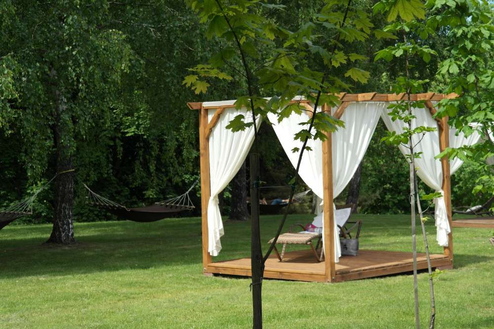 В агроусадьбе недалеко от Минска, которую создал Сергей Михайлов, есть деревянные домики в лесу, животные, бассейн и лужайка для торжеств.