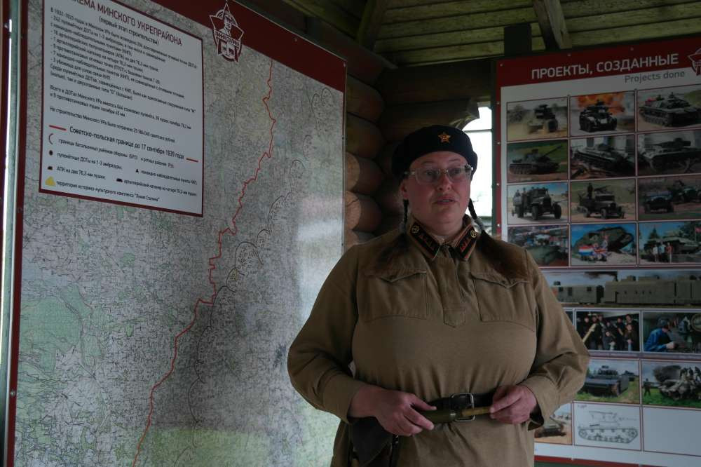 "В это сложно поверить, но западная граница Советского союза проходила в пяти километрах от нашего комплекса. Минск очень близко - порядка 30 километров. Поэтому до 1939 года по сути наш Минск оказался приграничным городом. И, конечно, Минский укрепрайон построен для защиты БССР. Минский укрепрайон начали строить в 1932 году. Он насчитывает более 300 ДОТов (долговременных огневых точек - Авт.). Большая часть ДОТов в состоянии заброшенном, физически мы не смогли охватить все. Общая протяжённость (системы укрепленных районов вдоль старой западной границы СССР от Карельского перешейка до берегов Черного моря - Авт.) около 2000 километров. Наш музей - это малюсенький участок "Линии Сталина", - рассказывает экскурсовод Лидия.