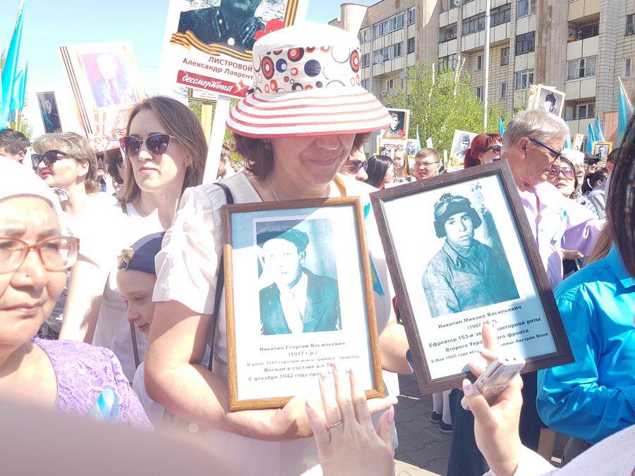 Зауреш-апай — одна из немногих, кто вышла на главную площадь города без портрета. Говорит, фотографии не сохранились. Или их и вовсе не было, ведь уходили на фронт и зрелыми, а всё больше – мальчишками. О судьбе Бекена Саутова, дедушке со стороны матери, его родные узнали лишь спустя 70 лет. До тех пор он считался пропавшим без вести.