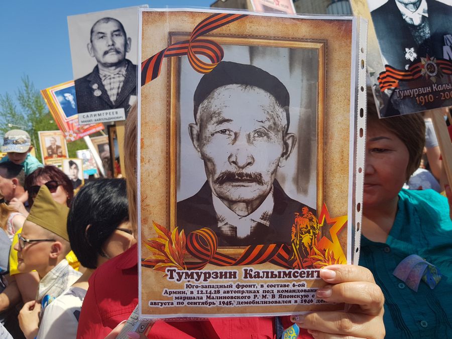 "Калымсеит Тумурзин воевал на юго-западном фронте, в составе 6-й армии в 12-м, 14-м, 28-м автополках под командованием маршала Малиновского. А также участвовал в японской военной кампании, с августа по сентябрь 1945-го. Демобилизовался в декабре 1947 года. В числе многих наград — орден "Звезда Отечества", медаль "За отвагу", — отметила внучка славного воина.