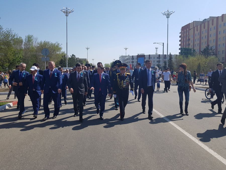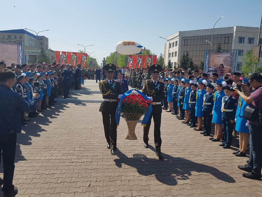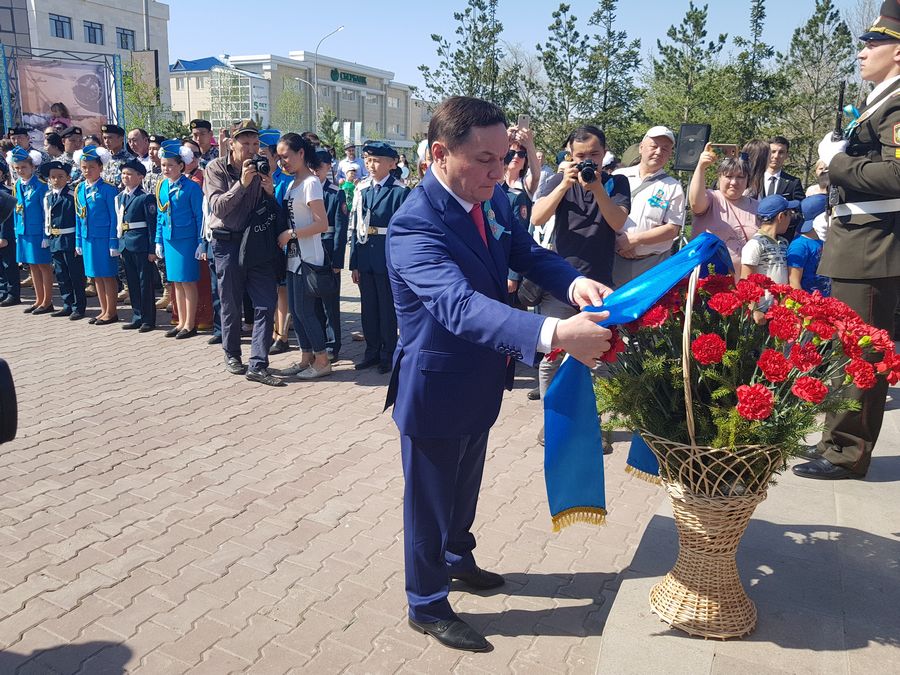 Аким Акмолинской области Ермек Маржикпаев и общественность города возложили корзины цветов к мемориалу "Вечный Огонь", памятнику Героя Советского Союза Малика Габдуллина и бюсту дважды Героя СССР Талгата Бегельдинова.