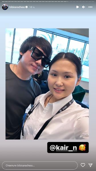 Бибисара, в свою очередь, разместила в сторис совместное с Нуртасом фото и ответила звезде шоу-бизнеса коротким посланием: "Спасибо, что посетили наш турнир!".