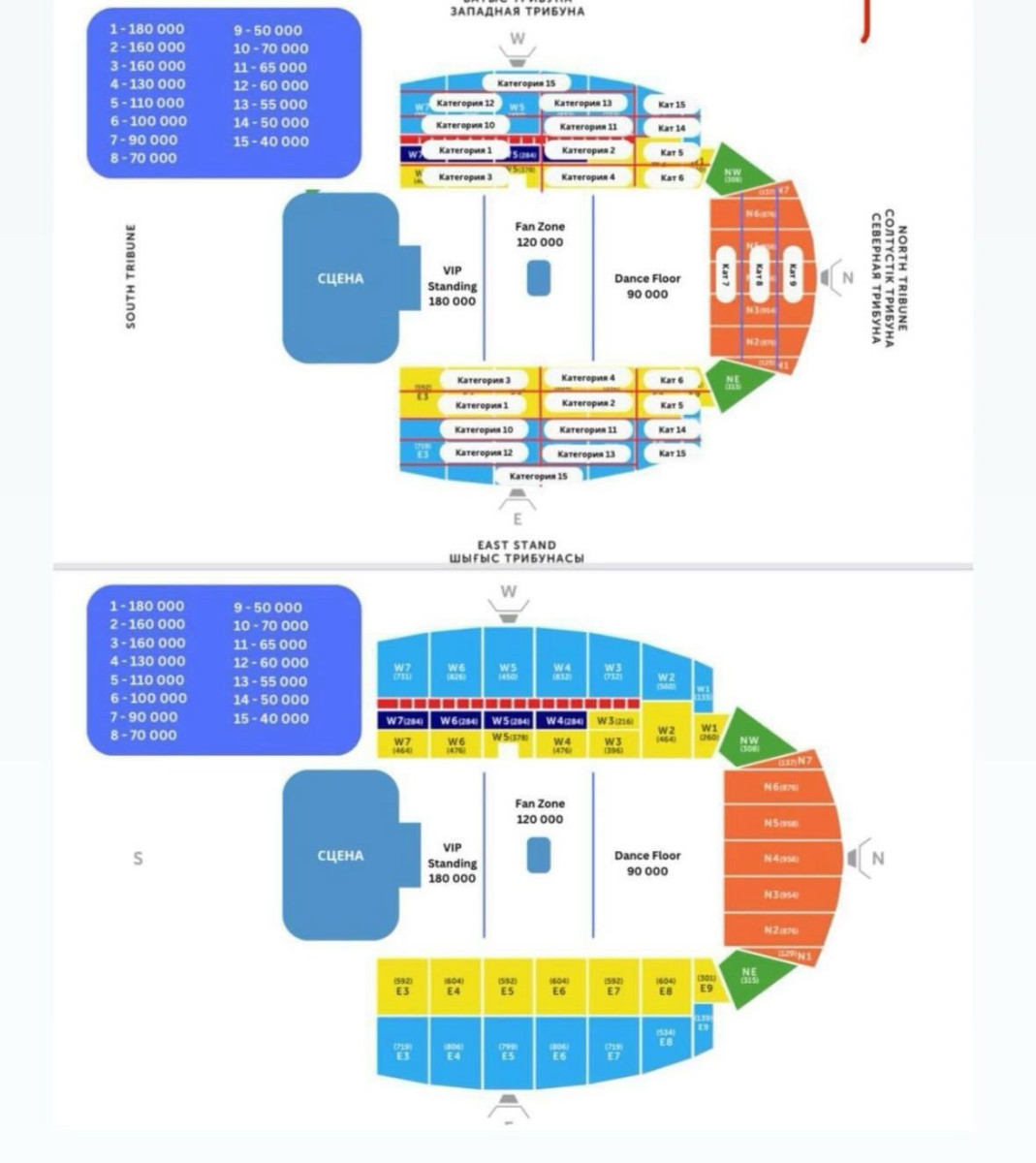 Известно, что цены на билеты стартовали от 40 000 тенге, максимальная стоимость достигала 150 000. Всего было предложено 15 ценовых категорий.