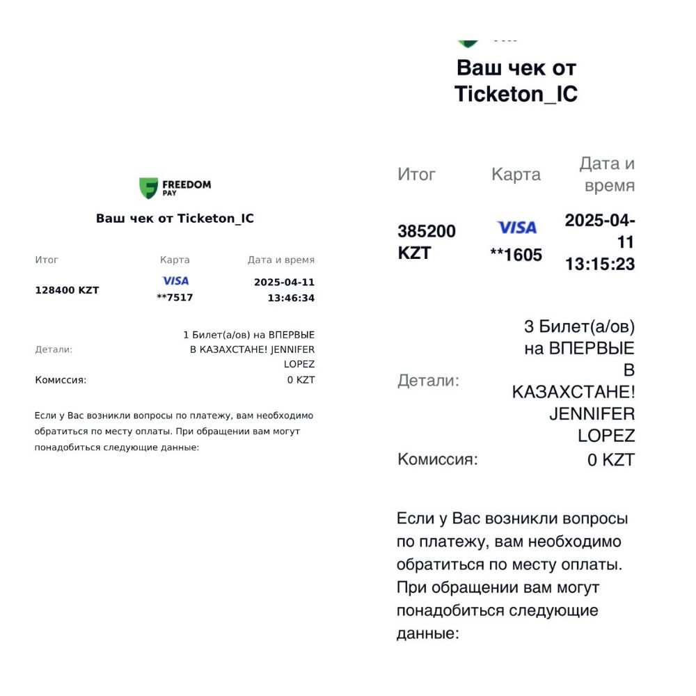"Никакой компенсации мне на карту не поступало — ни 50%, ни какой-либо другой суммы. Хотя я оформляла всё официально и покупала билеты по полной стоимости. Очень обидно, что одни зрители теперь получают скидки, другим обещают возврат, а мы остаёмся ни с чем", — рассказала Манкешева.