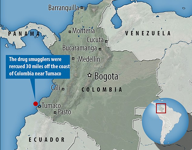 Колумбийские военные моряки обнаружили трех мужчин в 55 километрах от города Тумако (Tumaco). Пострадавшие объяснили, что их лодку затопила большая волна, после чего они около трех часов провели в Тихом океане, держась за черные пакеты с наркотиками.