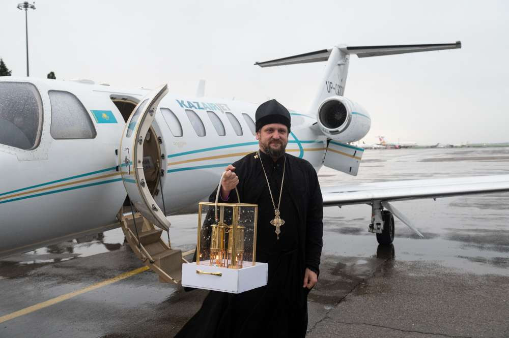 Шествие по Казахстану частицы Благодатного огня, сошедшего в иерусалимском Храме Гроба Господня в Великую Субботу 23 апреля, началось в 00:00 воскресенья в городе Актау. В аэропорт Актау на дозаправку прибыл небольшой бизнес-лайнер с делегацией православных посланников. Затем самолёт проследовал в Нур-Султан, где часть зажжённых в Иерусалиме светильников приняли священнослужители столицы и северных регионов Казахстана.