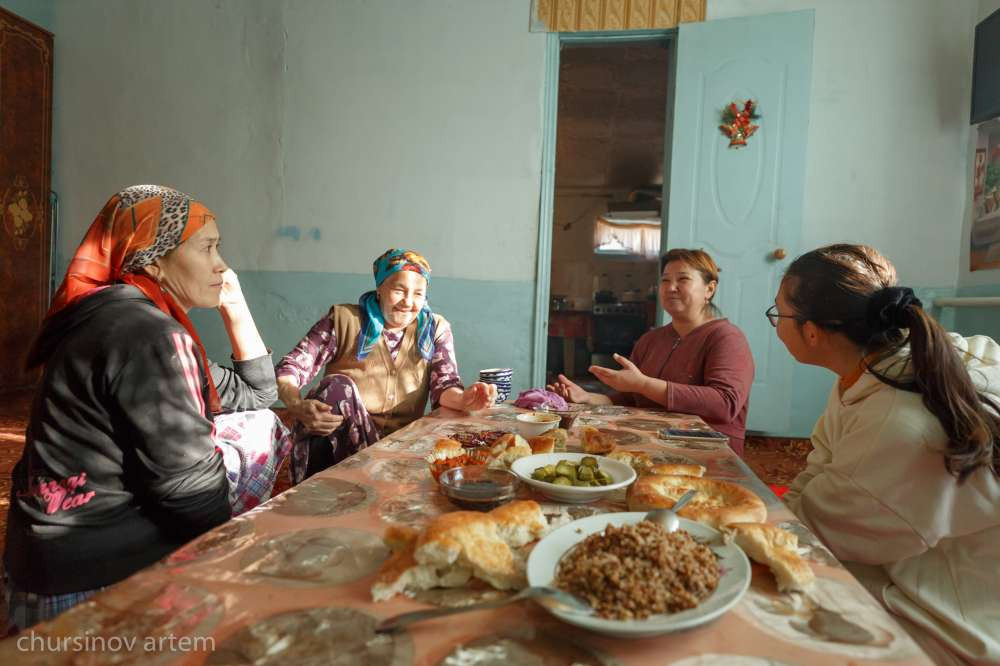 В ходе беседы к нам присоединились дочь Тойбике-апа – Ильмира – и соседка Эльмира, и чаепитие стало еще интереснее. Женщины рассказывали о своей жизни, о маленьких радостях, о бытовых проблемах, больших и не очень: о подорожании продуктов и одежды, нехватке общественного транспорта или, например, о том, как они написали в Instagram местному акиму и отвоевали детскую площадку у наглого соседа, устроившего во дворе свалку. В этих историях, как ни странно, не прозвучало ни одной жалобы. Все рассказы звучали буднично и непременно заканчивались фразой "Осыған да құдайға шүкір!" ("Слава богу и за это!") Казалось, какие бы испытания не подкинула им судьба, это те люди, которые не умеют унывать.