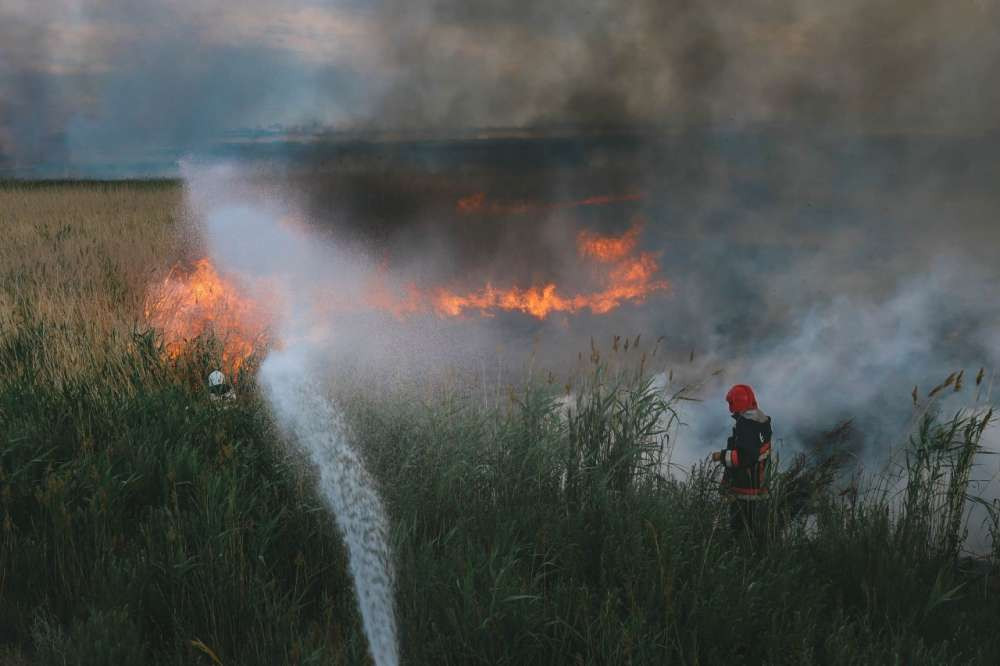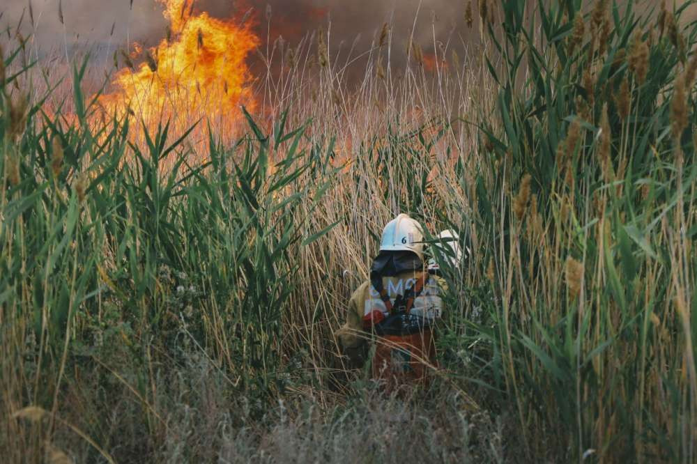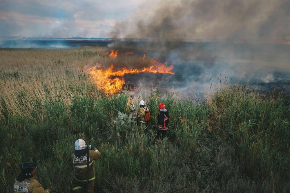 По прибытию огнеборцев установлено, что горит сухая трава и камыши на площади примерно в один гектар. Жертв и пострадавших нет.