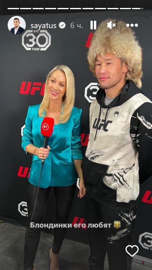 Спортивный менеджер Саят Абдрахманов в сторис на своей странице в Instagram опубликовал фото, как симпатичная американка берет интервью у Шавката Рахмонова.