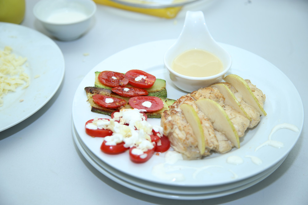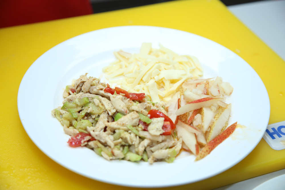 Журналистам из необычного ингредиента вместе с курицей, помидором, сыром и кабачком попалась груша. Каждый из них включал фантазию, чтобы блюдо получилось не только оригинальным, но и вкусным.