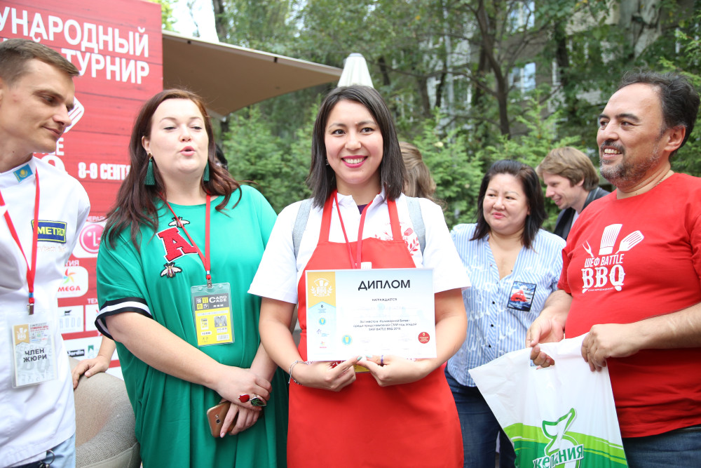 Тем временем, в Алматы жюри, в состав которого вошли именитые шефы Алматы Олесь Трубач, Андрей Неумывакин, а также известные артисты, актеры, выбрали лучшего повара-журналиста. Им стала корреспондент информационного портала "Total" Шолпан Махмудова.