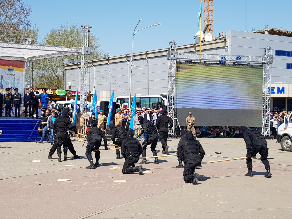 Кульминацией празднования стало выступление специального отряда быстрого реагирования департамента полиции Акмолинской области, сообщает корреспондент BNews.kz.
