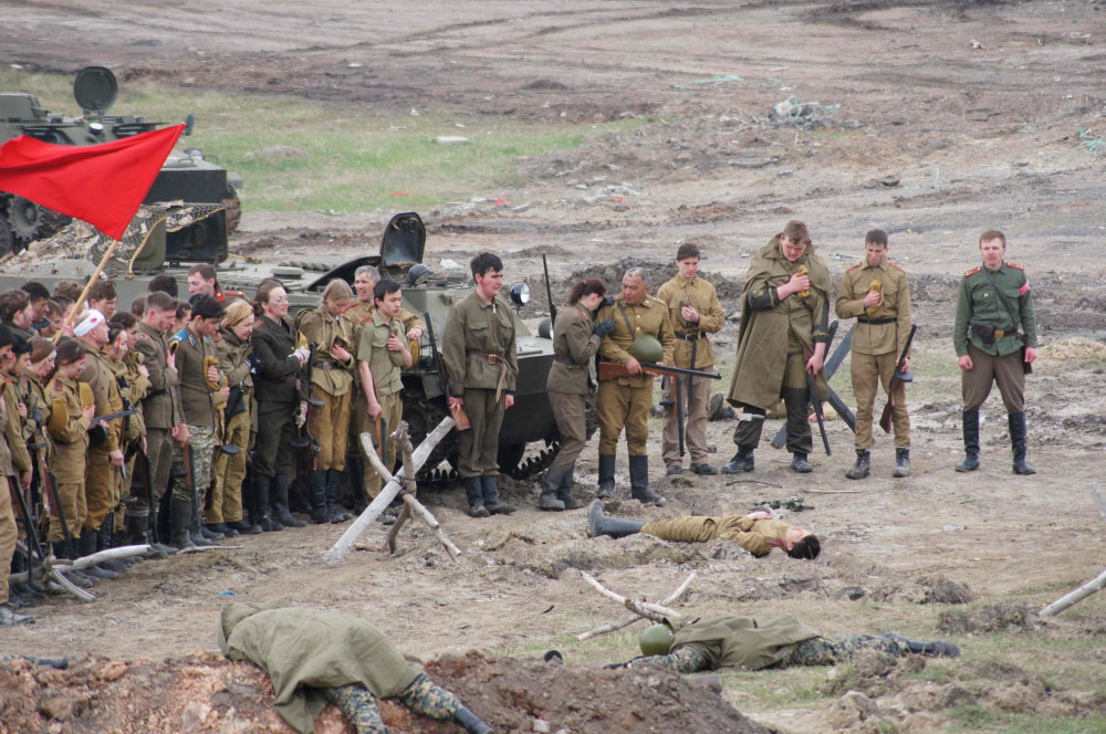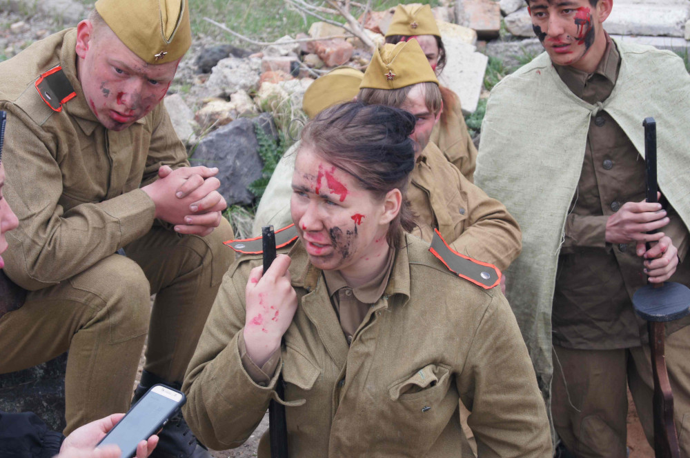 "Поначалу девочек не брали на участие в реконструкции, но когда сказали, что недобор и девочки нужны, мне военрук разрешил быть в числе участников. Я его уговорила. Я приходила на репетиции на полигоне. Там отрабатывали борьбу, драки рукопашного боя, всё, что должно быть по сценарию. Каждый из нас четко понимал кто кого "убил", кто должен упасть, а кто должен побежать и лечь на землю и не вставать потом. Каждый эпизод отрабатывали очень тщательно",- рассказывает Дарья.