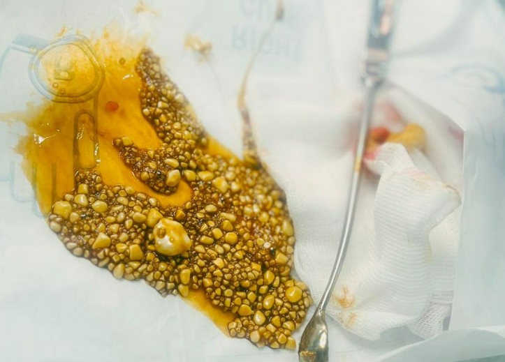 На следующий день ей провели лапароскопическую холецистэктомию под общим обезболиванием - современная малоинвазивная технология. После удаления жёлчного пузыря из него извлекли 1735 конкрементов диаметром от нескольких миллиметров до 1,5 сантиметра.