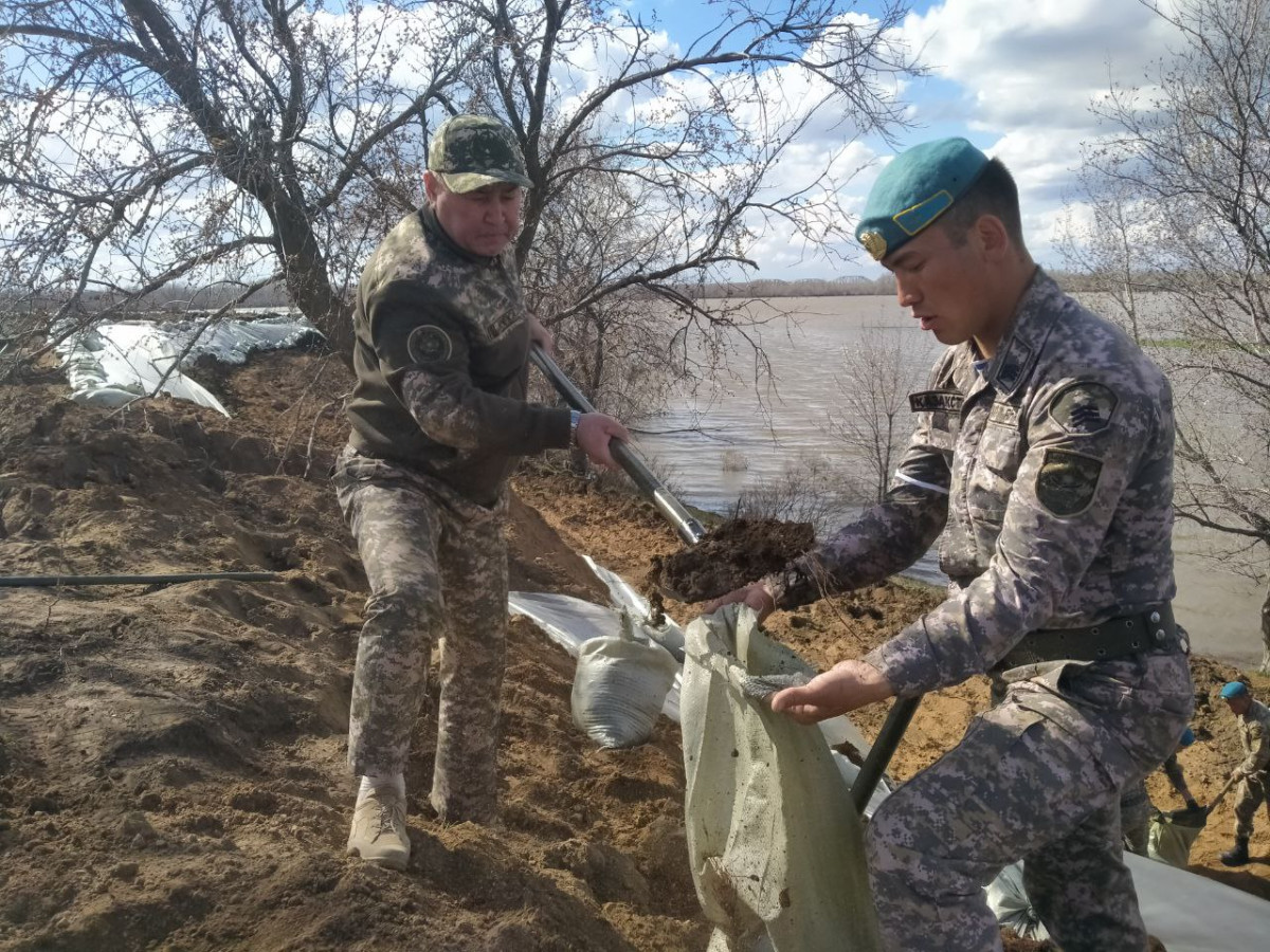 Напомним, для защиты западных регионов мобилизовано свыше 10 тысяч военнослужащих. 11 апреля по указанию Министра обороны в Западно-Казахстанскую область прибыли свыше 300 военнослужащих Десантно-штурмовых войск из Алматинского и Жетысуского гарнизонов. Их задача оказать помощь местным исполнительным органам в противопаводковых мероприятиях. Десантники задействованы в укреплении берегов рек Урал, Жайык, Кушкум, и Деркул.