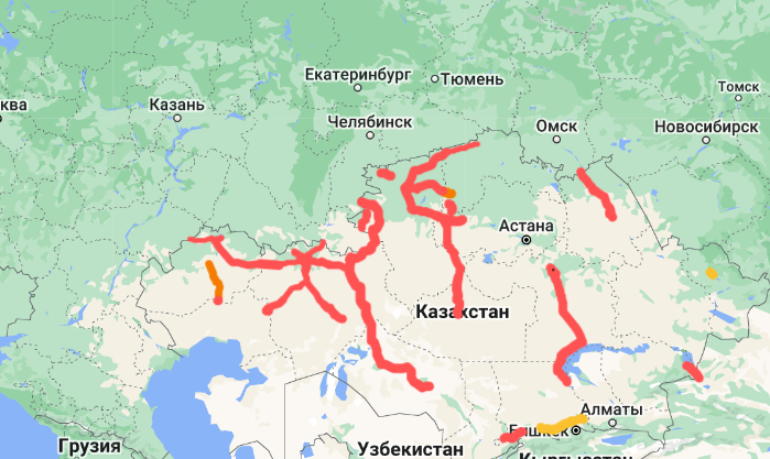 "По всей сети автодорог республиканского значения ограничение действует на 5 973 километрах. Скопление транспорта на участках – 4 182 единиц (3 598 грузовых, 584 легковых, три общественных)", - сообщили в "КазАвтоЖол".