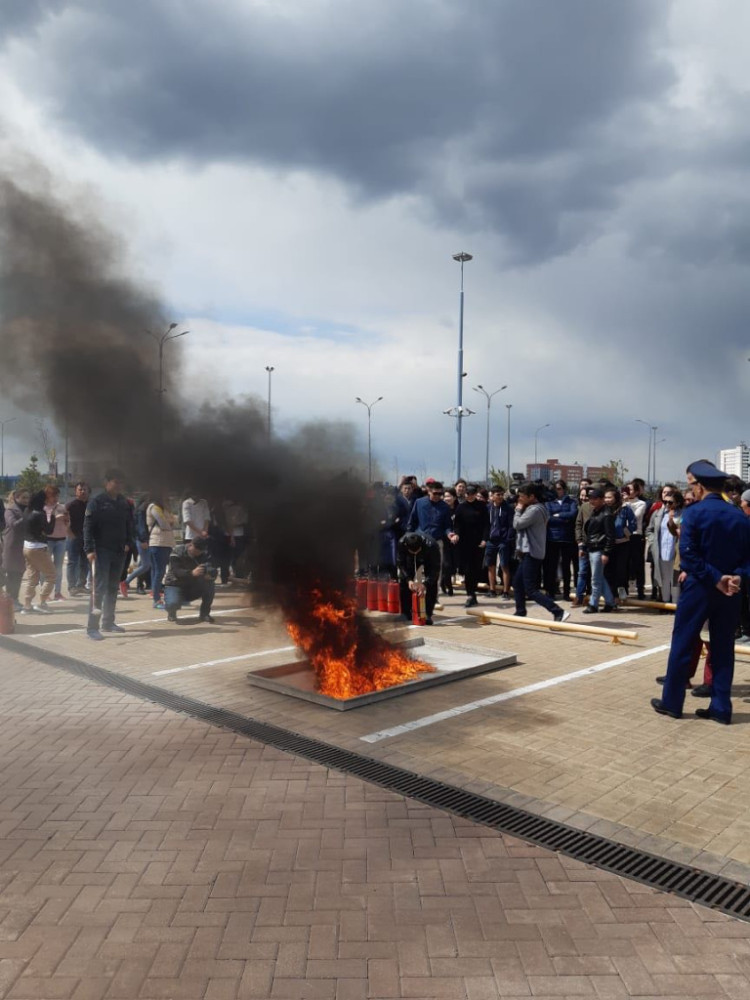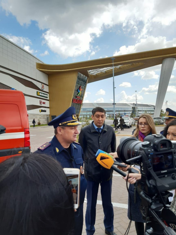 "В Департамент по ЧС города обратилось руководство данного ТРЦ с просьбой провести учения по отработке действия в случае возникновения пожара. Мы на эту просьбу откликнулись. Вы знаете, что в прошлом году в России был достаточно сложный пожар с множеством жертв. Была поставлена задача руководством страны провести проверки противопожарного состояния всех крупных торгово-развлекательных центров. В целом было привлечено 11 единиц пожарной техники из трех пожарных частей и 74 человека личного состава. Достаточно серьезный объект. Хотел бы отметить, что в столице это самый большой торговый центр площадью 140 тыс кв метров. Конечно, разные условия, начинка серьезная, от торговых бутиков, до кинотеатров и кафе. Чтобы усложнить задачу было два рабочих места", - сообщил председатель Комитета по ЧС МВД РК Владимир Беккер.
