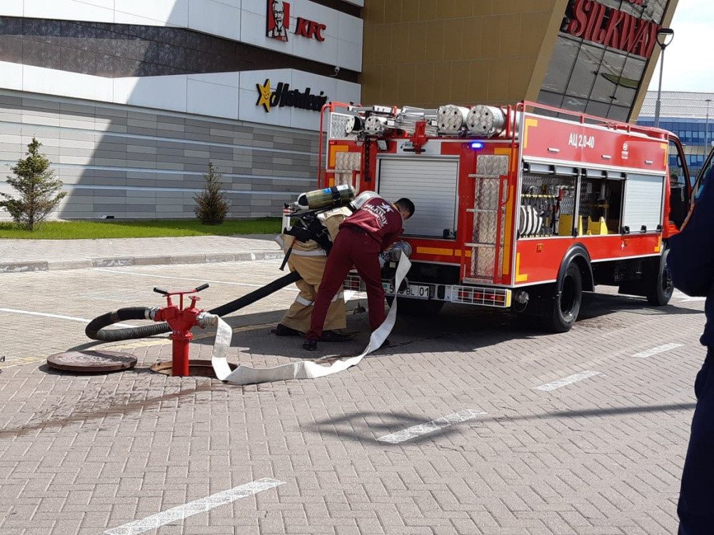 Сотрудники ДЧС города Нур-Султан провели пожарно-тактические учения на территории ТРЦ "Mega Silk Way", из здания было эвакуировано 2300 человек, передаёт корреспондент Bnews.kz.