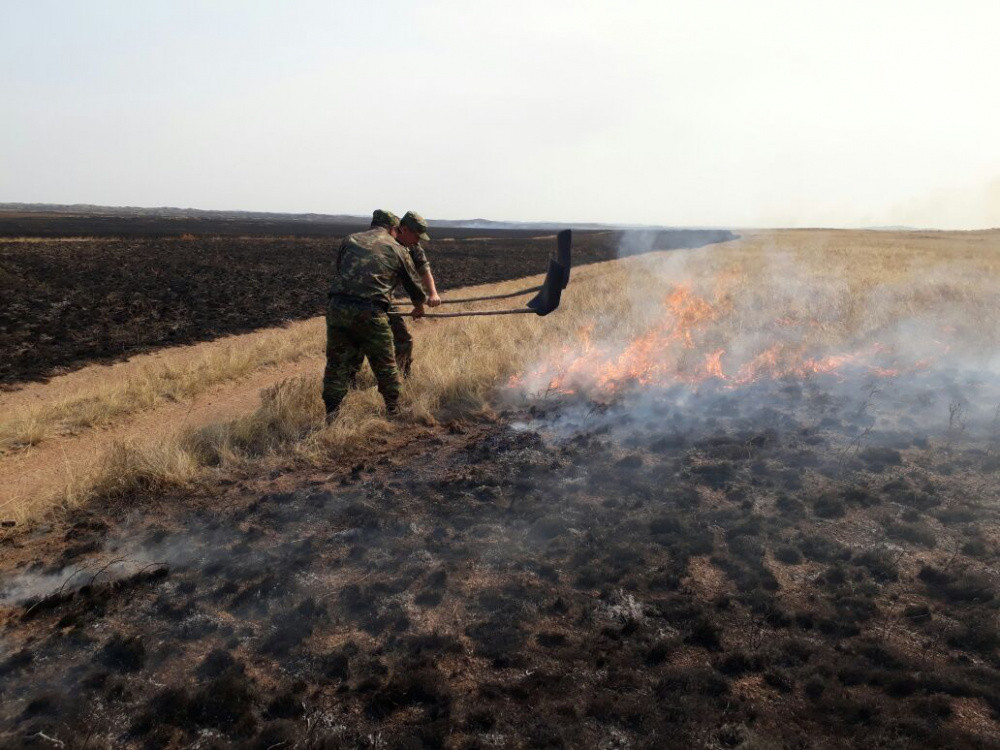 "9 августа в 10:20 в ДЧС Акмолинской области поступило сообщение о степном загораний на отгонном участке Масакпай Койтасского сельского округа Ерейментауского района. На открытой скалистой местности произошло загорание сухой травы на площади предварительно 280 га. В ДЧС области развернут оперативный штаб. В ликвидации пожара задействованы силы и средства ДЧС области: 52 человека личного состава и 12 единиц техники, 14 человек и 3 единицы техники лесхоза, а также 120 человек и 22 единицы техники добровольного противопожарного формирования", - говорится с сообщении департамента.