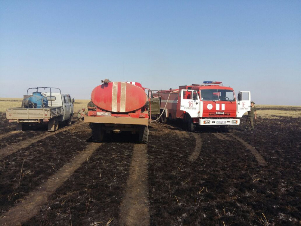 "9 августа в 10:20 в ДЧС Акмолинской области поступило сообщение о степном загораний на отгонном участке Масакпай Койтасского сельского округа Ерейментауского района. На открытой скалистой местности произошло загорание сухой травы на площади предварительно 280 га. В ДЧС области развернут оперативный штаб. В ликвидации пожара задействованы силы и средства ДЧС области: 52 человека личного состава и 12 единиц техники, 14 человек и 3 единицы техники лесхоза, а также 120 человек и 22 единицы техники добровольного противопожарного формирования", - говорится с сообщении департамента.