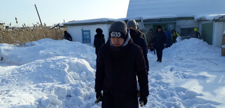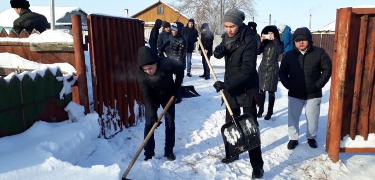 «Несмотря на мороз, студенты приехали сюда поддержать нуждающихся. Мы планируем расчистить дворы шести домов в поселке Коктал-1», – сказал Мухамеджан.