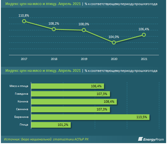 В Казахстане по итогам апреля цены на мясо и птицу увеличились на 6,4 процента за год, передает