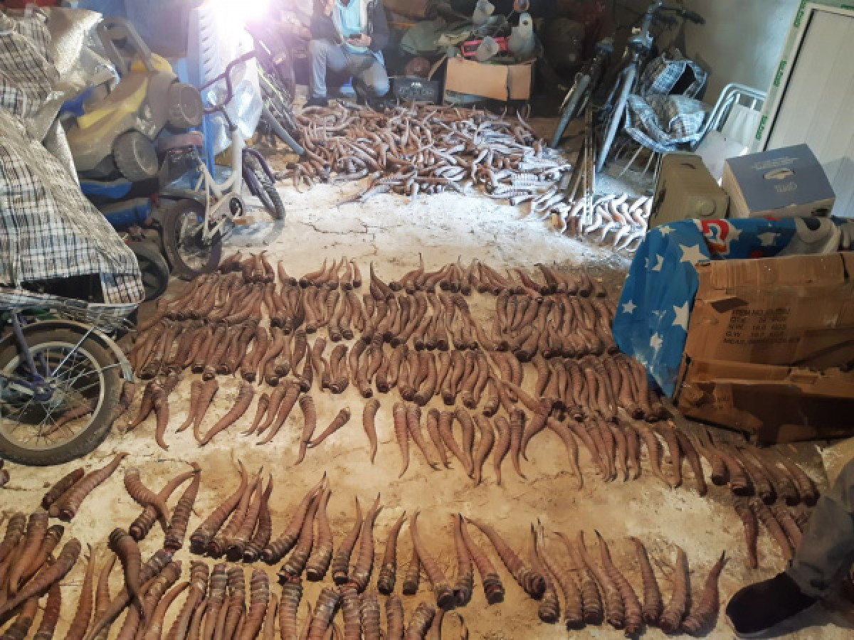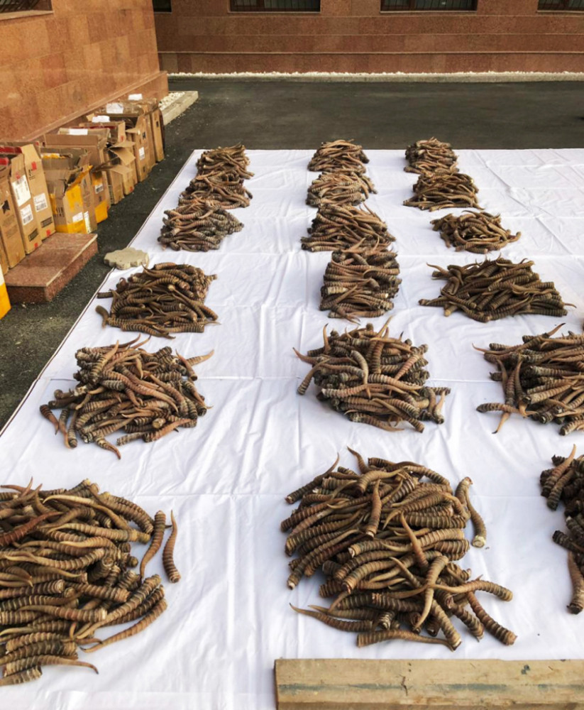 Оперативно-следственной группой в ходе обысков изъято 1 тонна 118 кг (более 3 тыс. особей) рогов сайги.