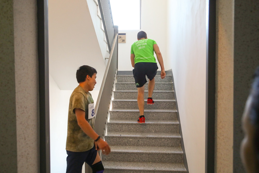 <p>Участникам забега необходимо было пробежать 100 метров и после покорить высоту в 34 этажа жилого комплекса Highvill.</p>