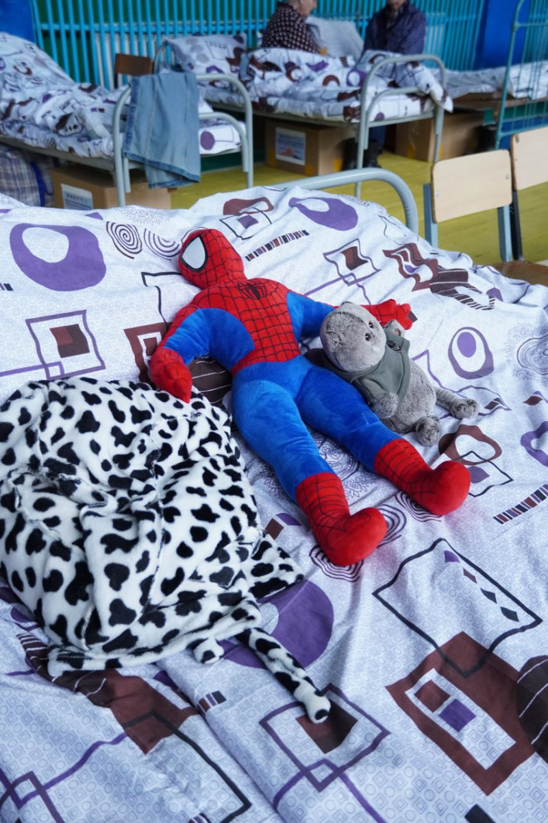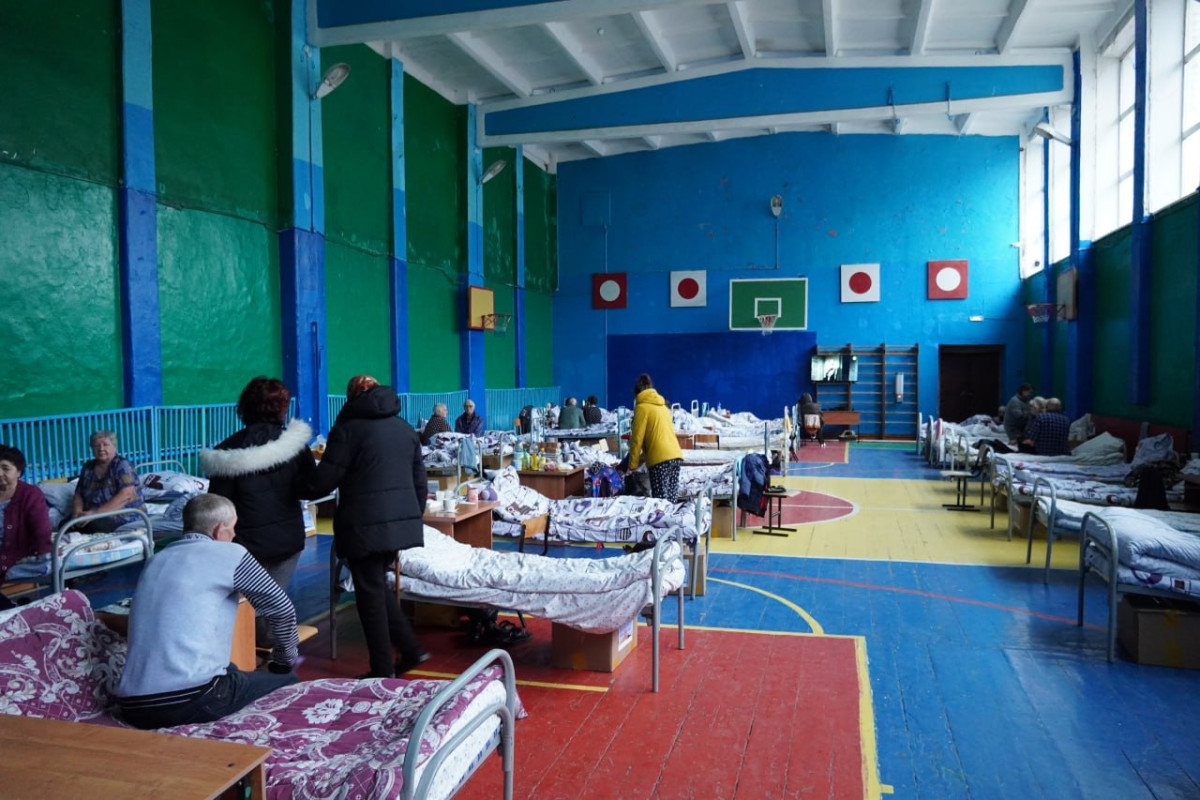 "Медицинская помощь здесь организована первой поликлиникой. Также работает постоянная сервисная скорая помощь. А медпомощь здесь нужна людям постоянно, потому что они в таком психологическом состоянии, что очень частно вызывают скорую с давлением. Здесь же расположен штаб, в котором есть подразделения учёта и регистрации населения и есть подразделения охраны порядка, есть подразделения оповещения и связи, также в школе организована комната матери и ребёнка. Есть библиотека, книги выложили для людей, чтобы они могли брать читать, чтобы хоть как-то отвлекаться от этой страшной ситуации. В зале, где размещаются люди, есть кровати, тумбочки, питьевая вода. Также выдаем всем средства личной гигиены, которые поступают от волонтёров и людей, которые оказывают помощь, а также от АНК. Например, сегодня 13 апреля таджикский центр оказали помощь для наших людей: привезли одежду по размерам и продуктовые коробки. В них непортящиеся продукты. Люди, когда они будут уже у себя дома, могут приготовить себе еду", — рассказала Антонина Сачкова.