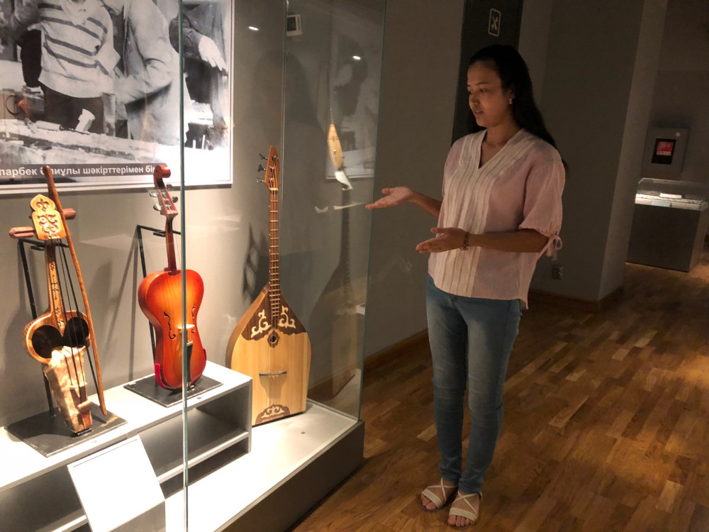 "Копию домбры изготовил мастер Едиге Набиев из Уральска. Он специально ездил в Астраханскую область, где хранится оригинал этой домбры. Домбра Ыбыр Досалиев – ученика Курмангазы, Курмангазы играл на этой домбре. Часто бывает такое, что люди желают сдать в музей свои инструменты. Мы требуем доказательства письменные или фото документы, что они принадлежали знаменитостям", - отметила научный сотрудник музея.