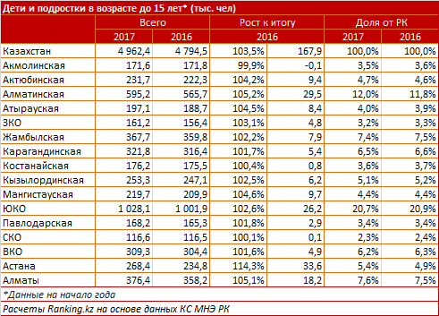 Прогноз на будущее подтверждает, что одним из ключевых центров притяжения молодого кадрового резерва будет Алматинская агломерация. В Алматы и Алматинской области сконцентрировано почти 20% всех детей и подростков (молодых казахстанцев до 15 лет). И здесь же зафиксированы одни из самых высоких темпов роста числа детей и подростков - на 5,1-5,2% в год, при среднем по РК - всего 3,5%. Более высокие темпы отмечены только в Астане.