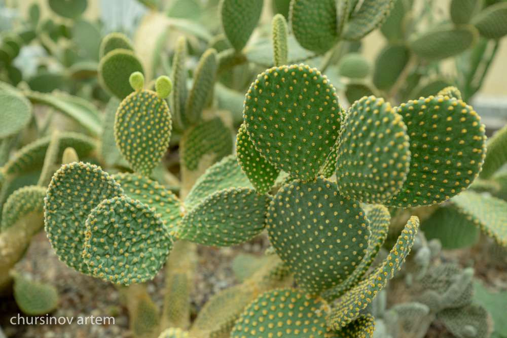 Растут в оранжерее и разновидности опунции — белые, желтые, пушистые.