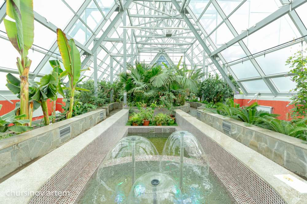 "Площадь оранжереи "Тропики и субтропики" составляет — 298,13 м2, максимальная высота — 13 м, с перепадом высот в нижней части — 7 м. Коллекция тропических и субтропических растений насчитывает — 1036 посадочных единицы, представленных 62 видами из 23 семейств интродуцированных из Европы (Испания, Германия, Голландия), имеющих различное эколого-географическое происхождение", — говорится на официальном сайте Астанинского ботанического сада.