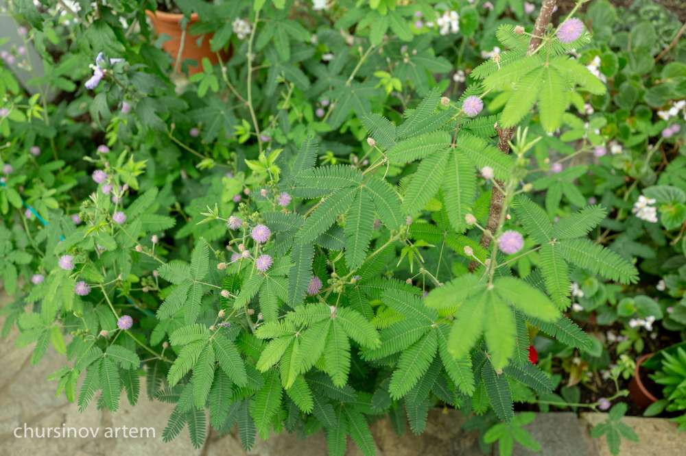 Особенностью следующего растения — мимозы стыдливой — является то, что при прикосновении к ней, ее листья сразу сворачиваются.