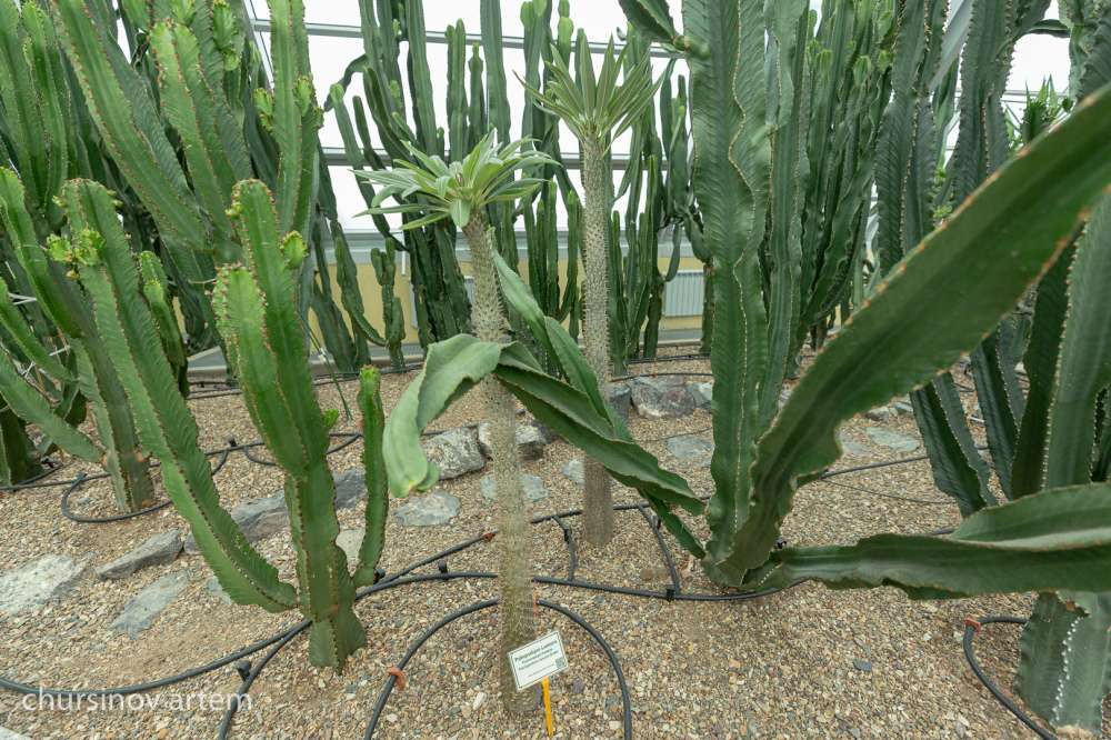 В оранжерее также представлен молочай вариегатный — один из самых крупных суккулентов.