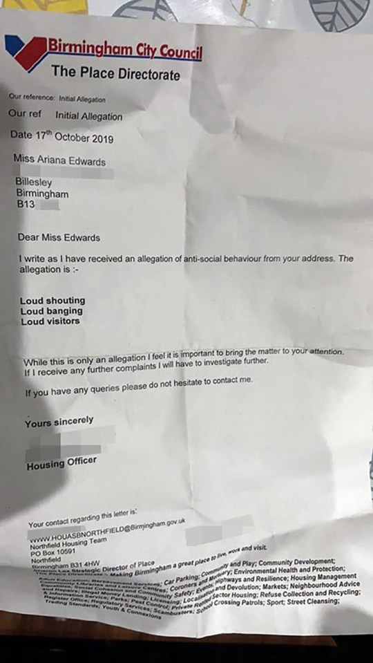 "Дорогая мисс Эдвардс, мы получили информацию об антисоциальном поведении по вашему адресу. Сообщение такое: громкие крики, стук, шумные посетители. Пока это только предупреждение, чтобы привлечь ваше внимание. Если мы получим еще жалобы, начнем расследование", – говорится в письме.