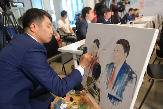 Молодой автор Женис Молдабеков назвал свою картину "Кездесу портретi" и подарил ее СЦК.