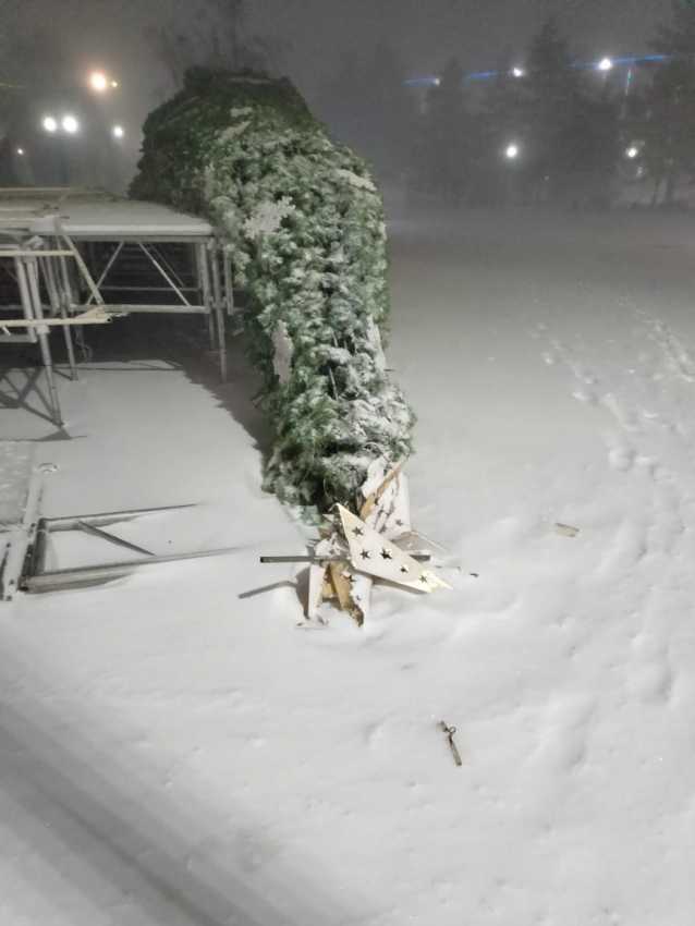Буран повалил новогоднюю ёлку в Лисаковске